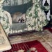 Give your pet the feeling of security that only a "safe" den can provide. Our canopy pet bed is available in designer fabrics to enhance your home decor. Our pet bed safely holds pets weighing up to 35 pounds. Our light green striped bedding set is paired with a sage colored plush interior and a silver frame.