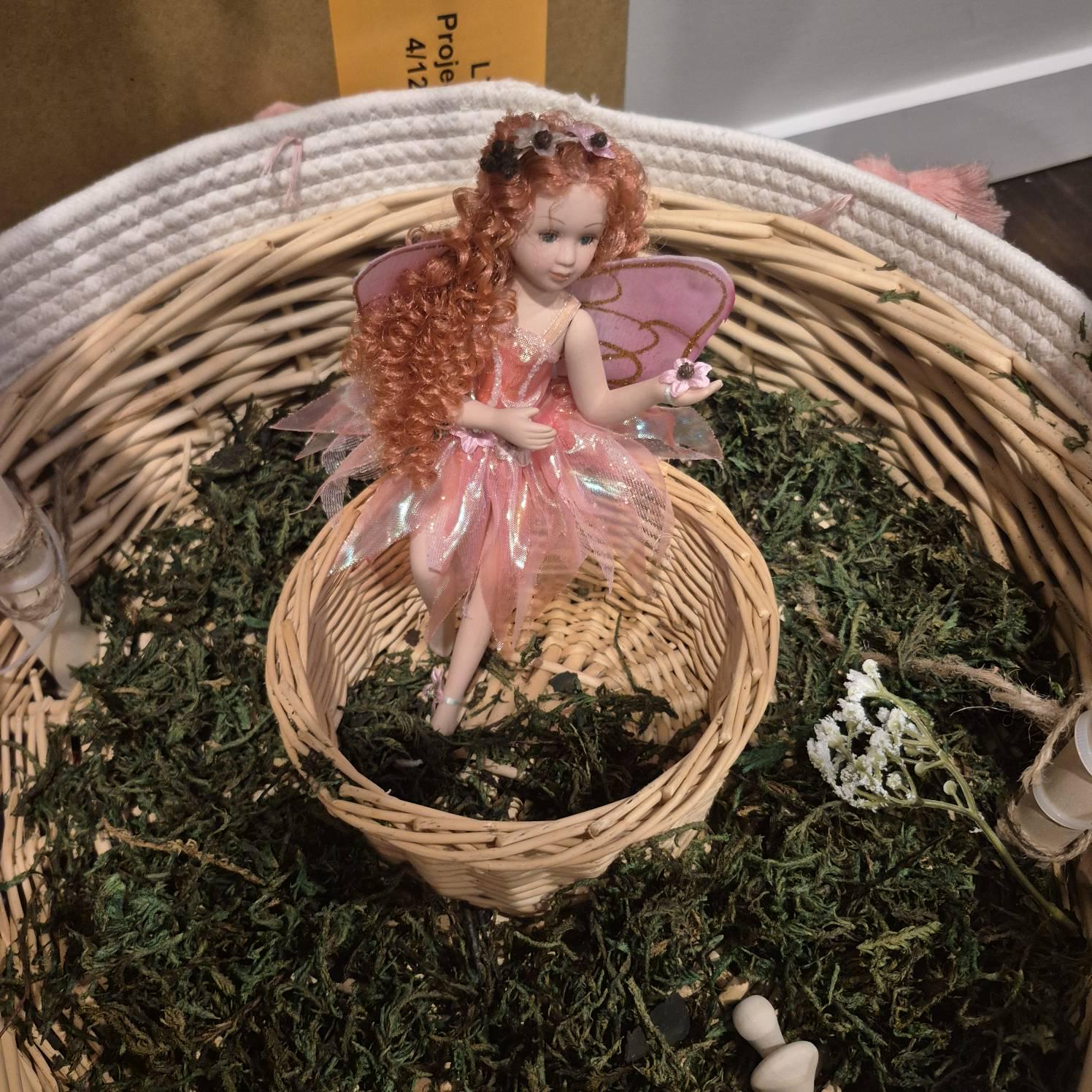 Choice of porcelain Fairy dolls. Each 8 inch doll comes with a doll stand. Heads, arms and legs of the doll are jointed and poseable.
