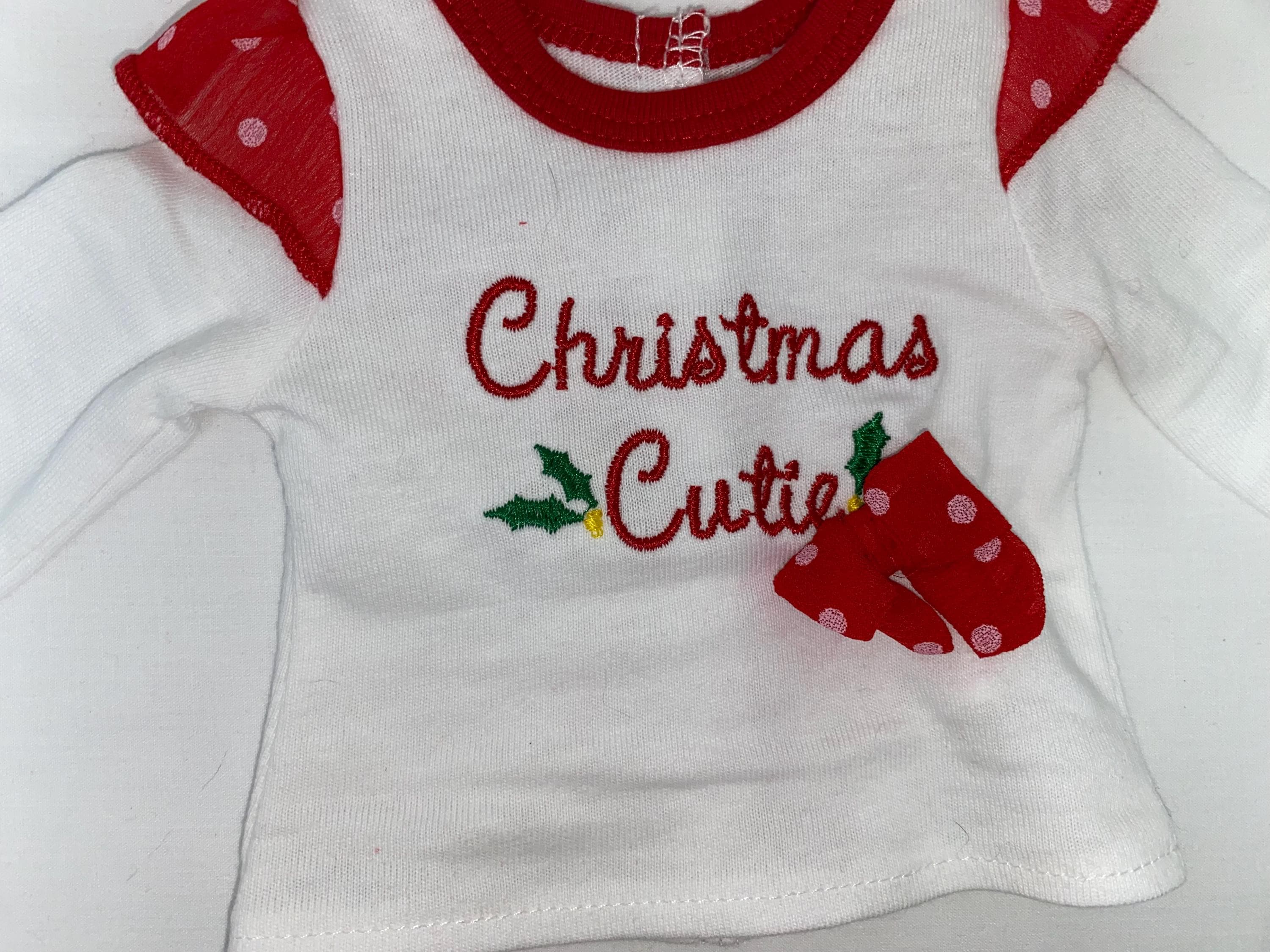 - Long sleeve top with embroidered Christmas Cutie on it and trimmed with a bow