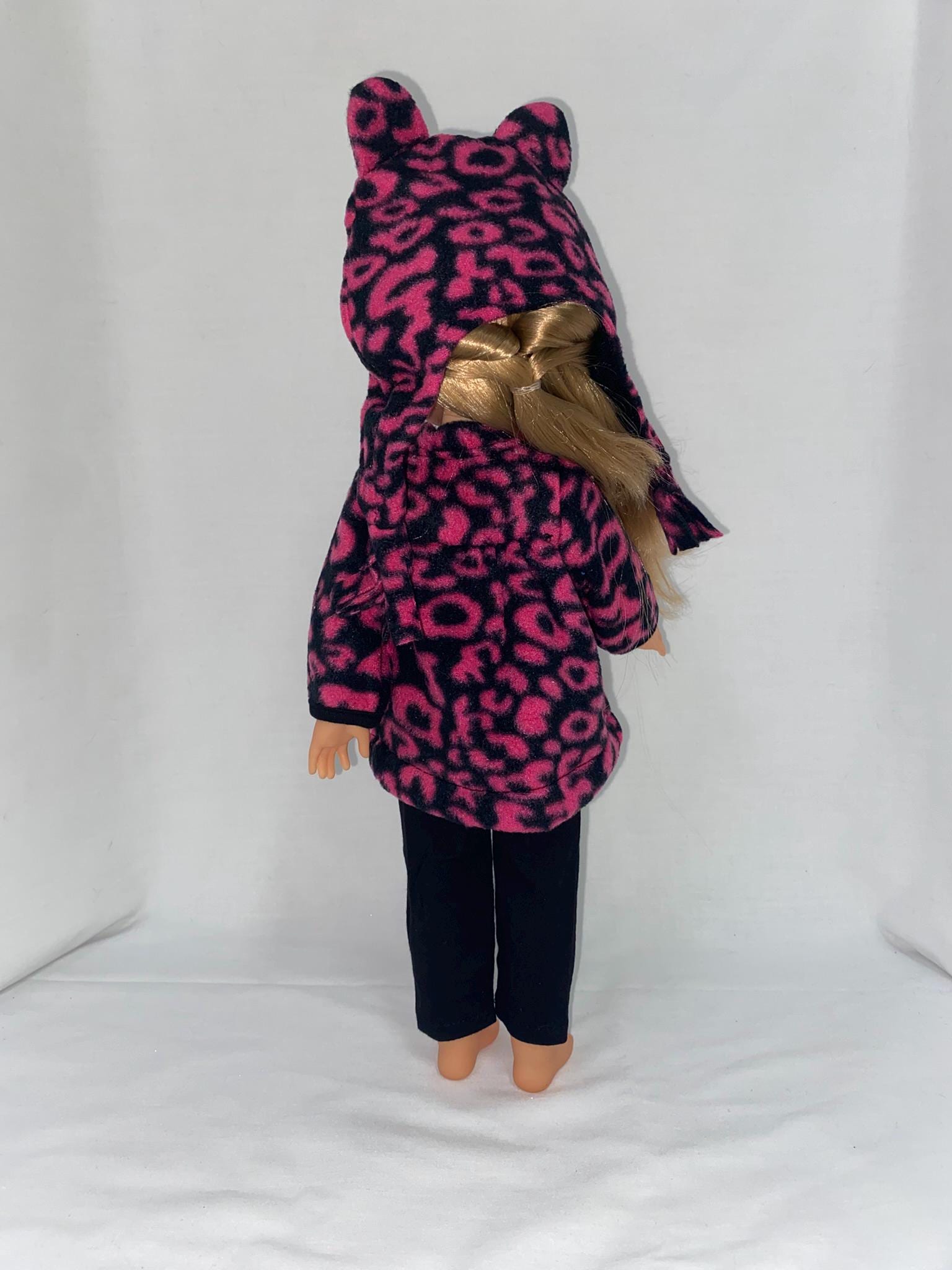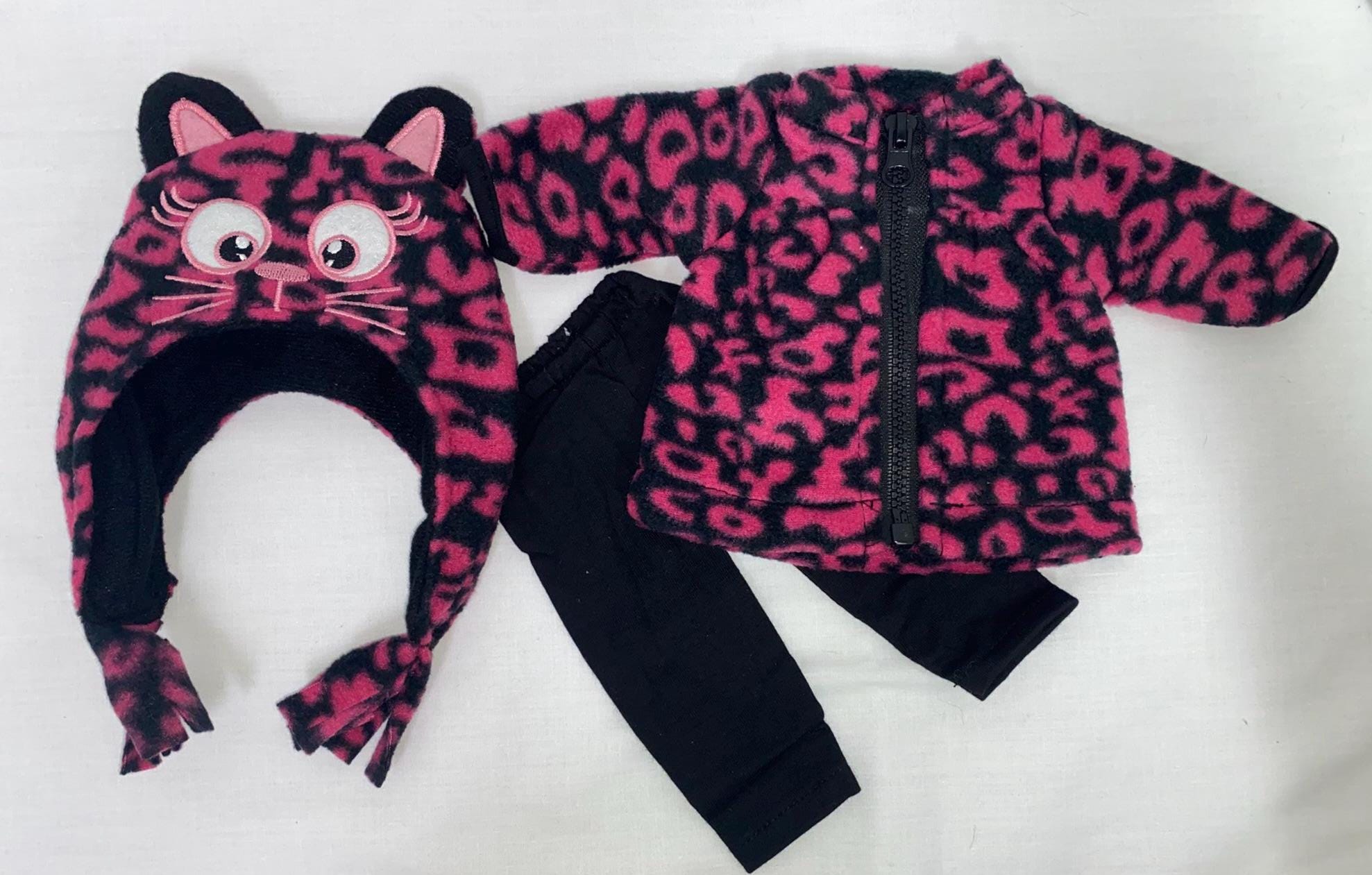- Matching leopard print hat with embroidered kitty face and ears