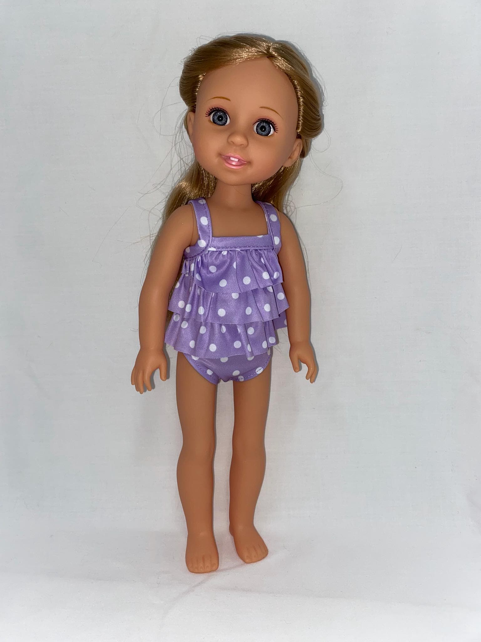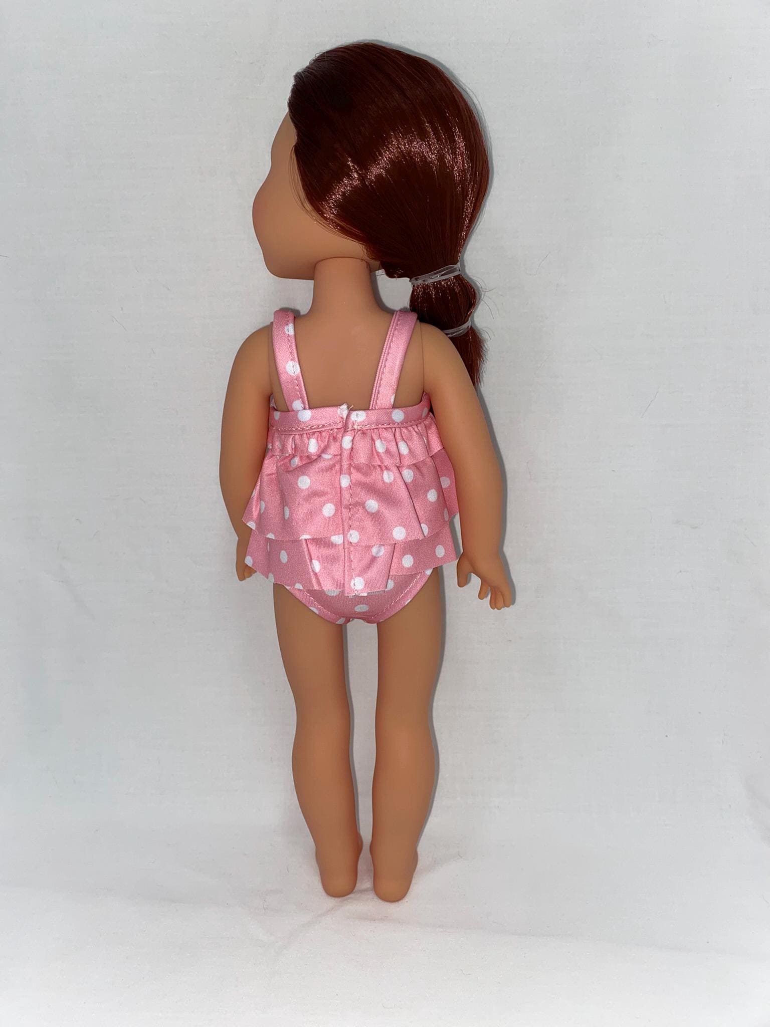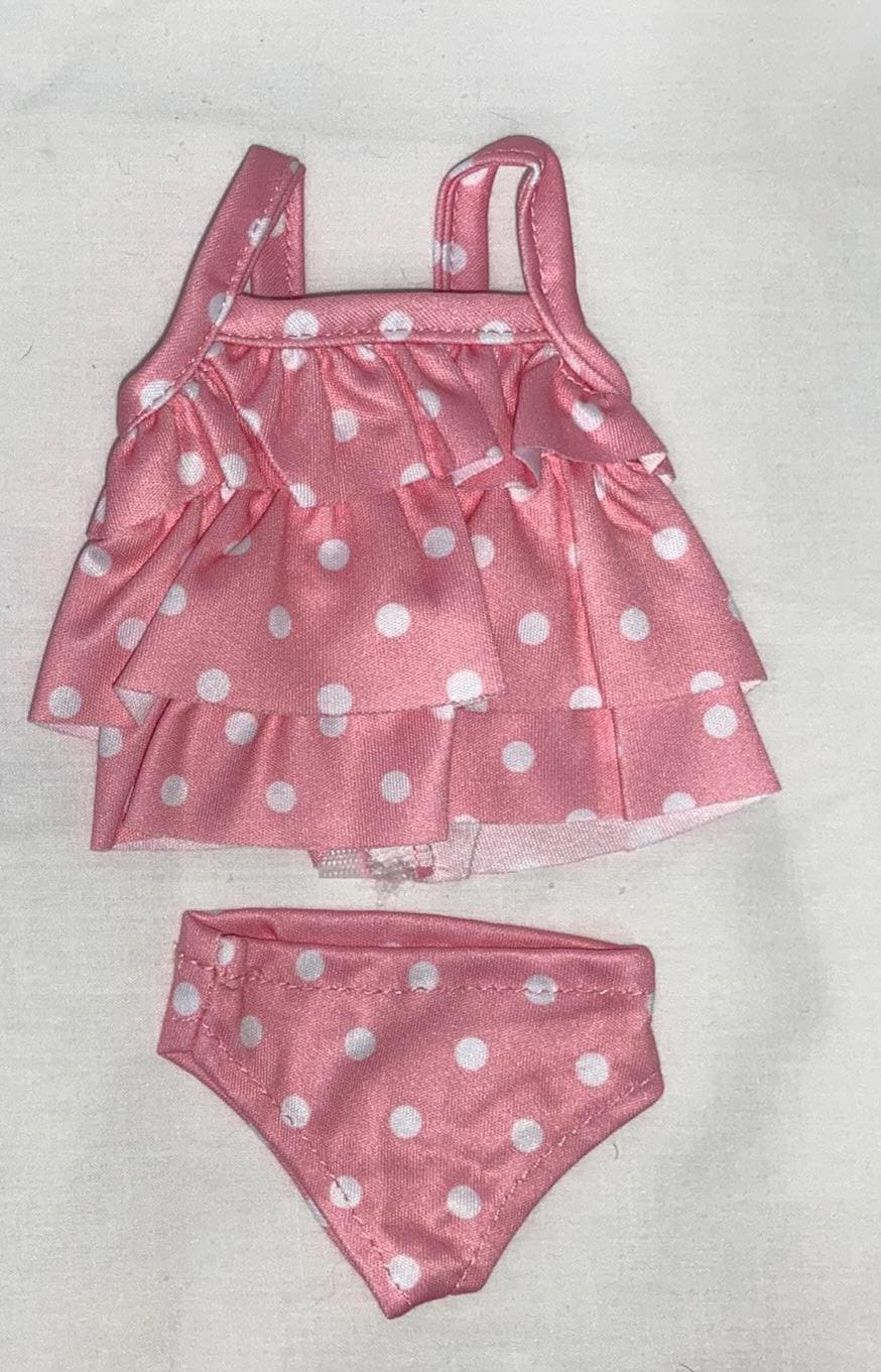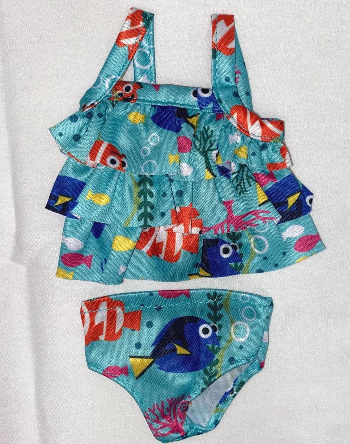 - Choice of pink polka dot, lavender polka dot, or aqua fish print 2 pc.swimsuit