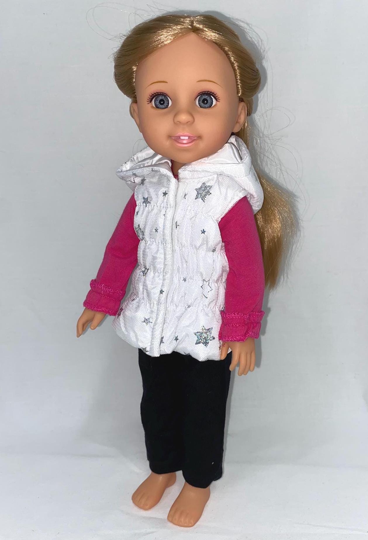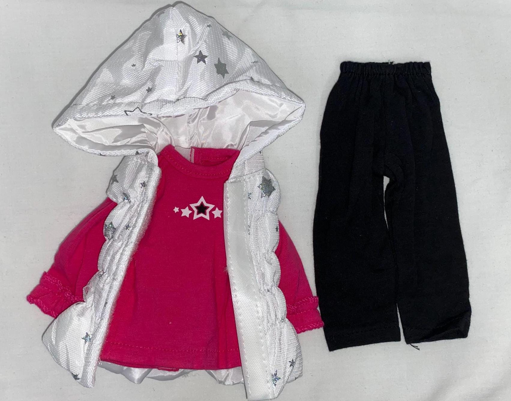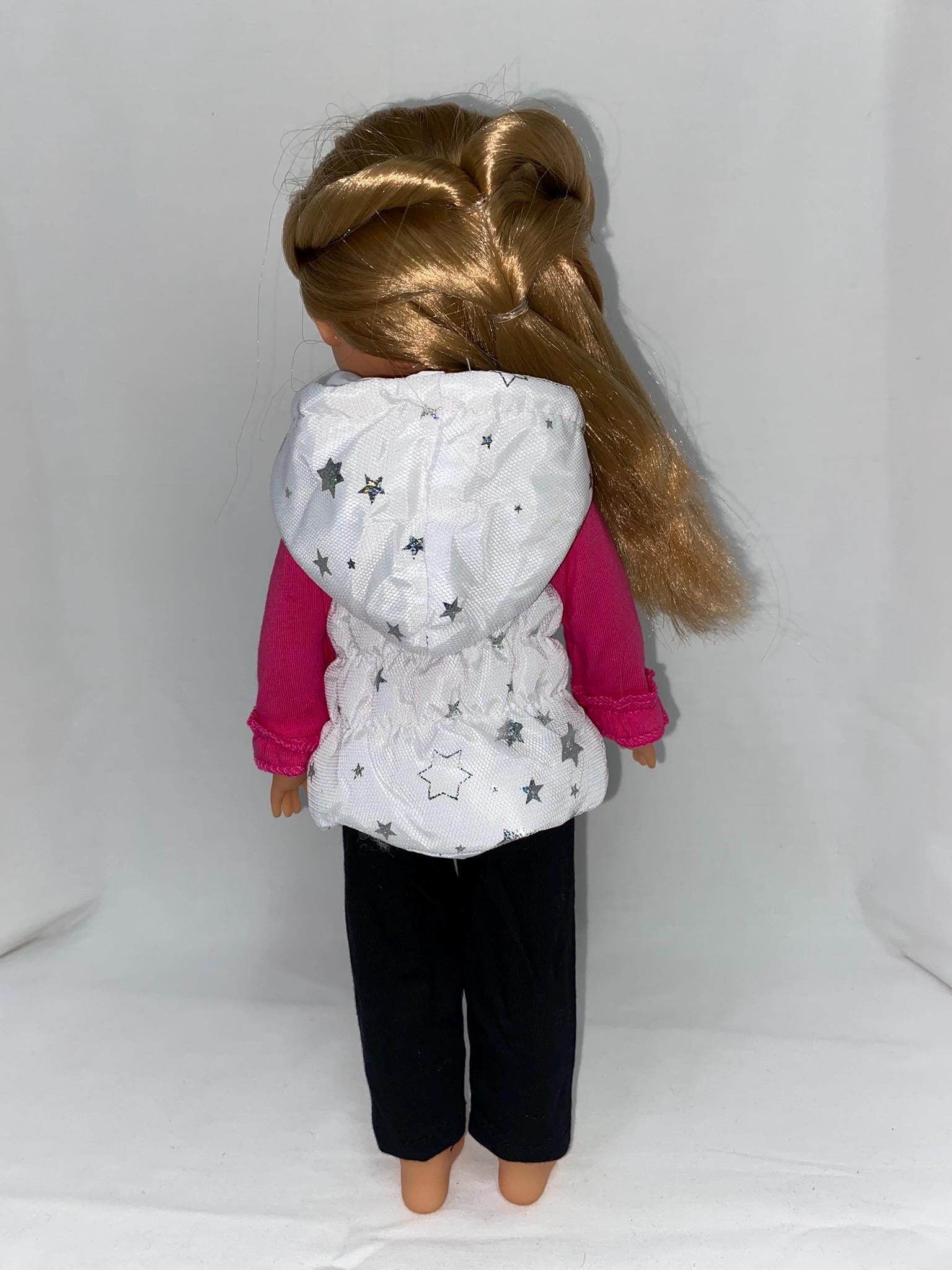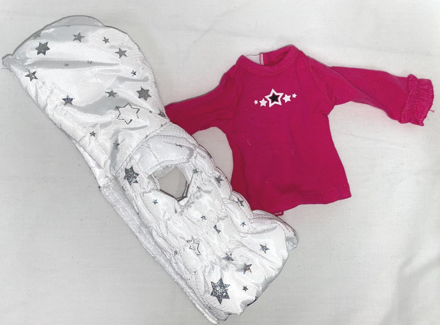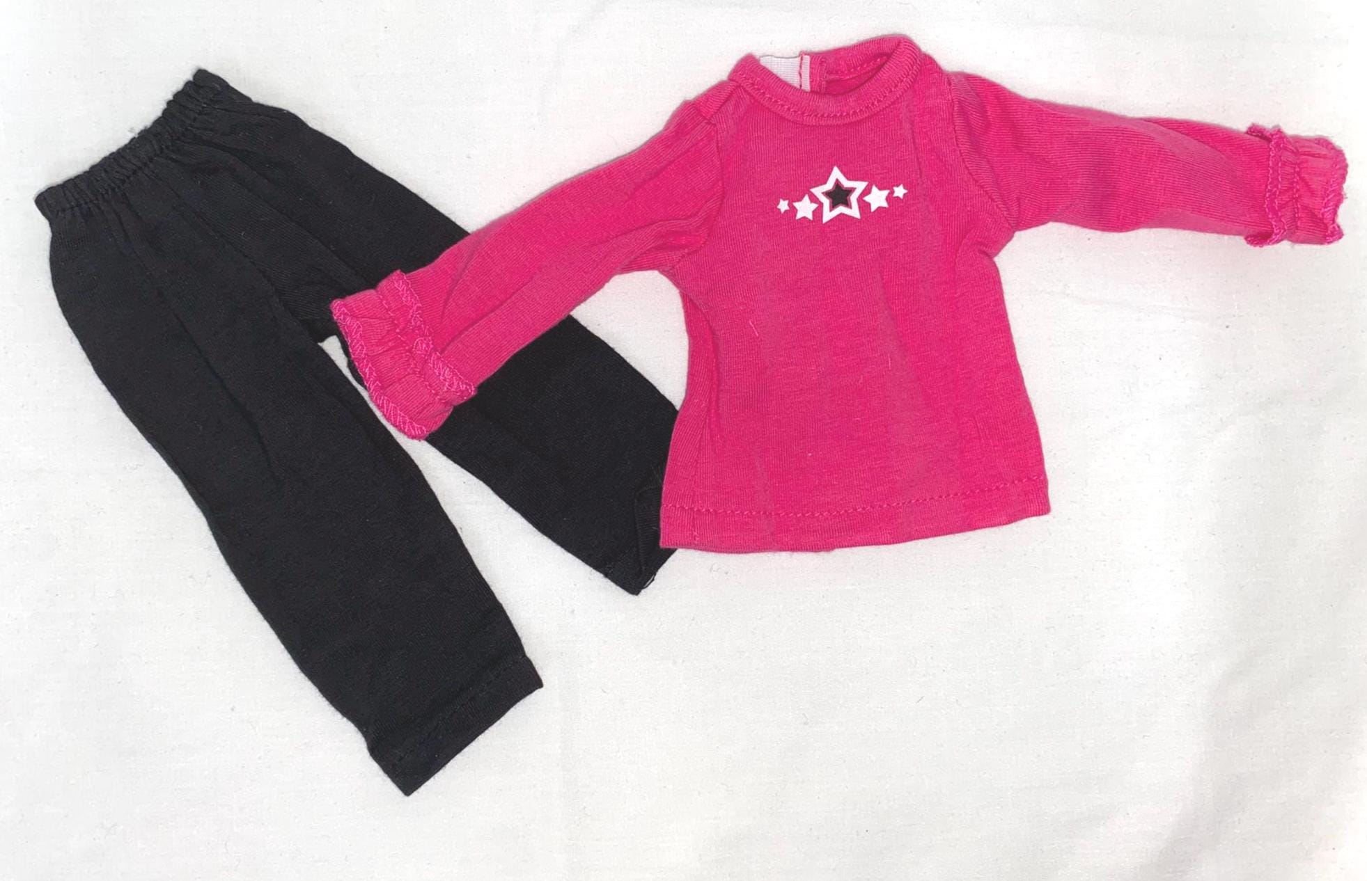 - Long sleeve hot pink top with ruffle trim sleeves and star print
