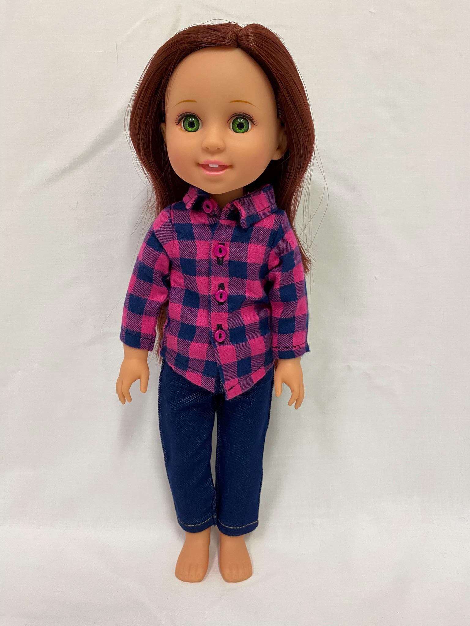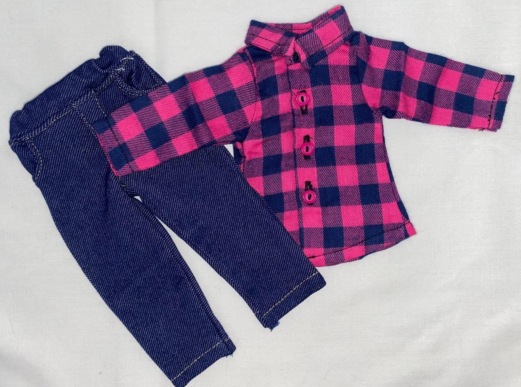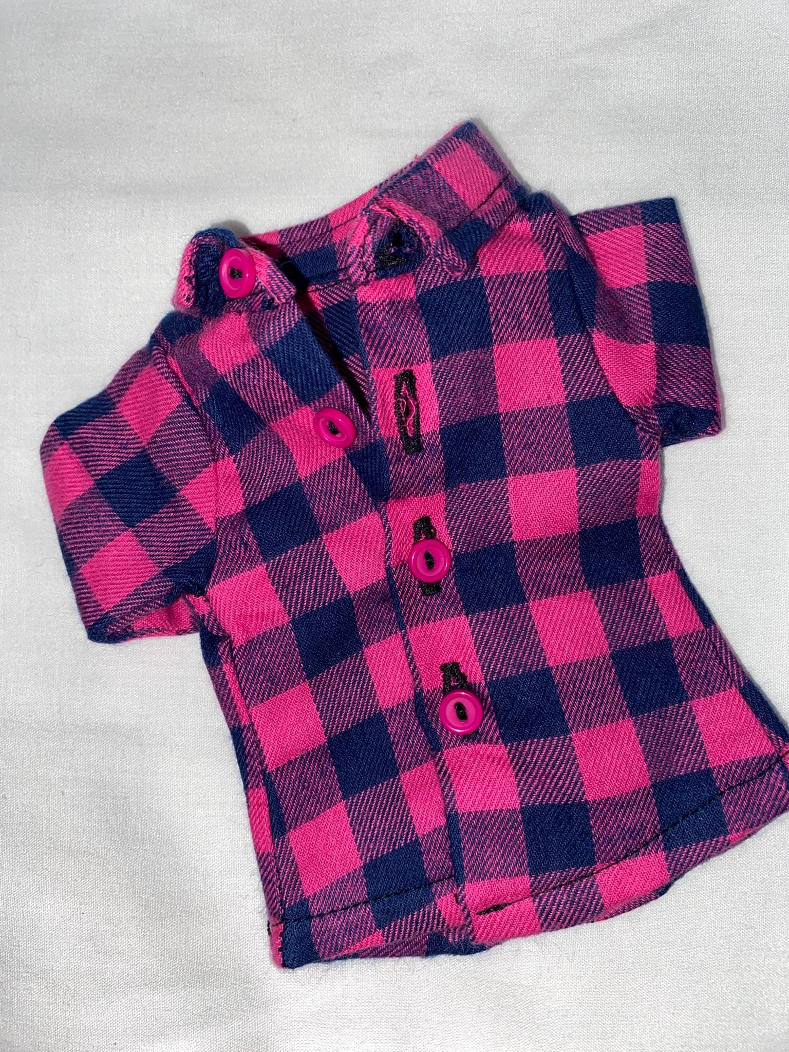 - Pink and black long sleeve flannel style button up shirt (with functional buttons)
