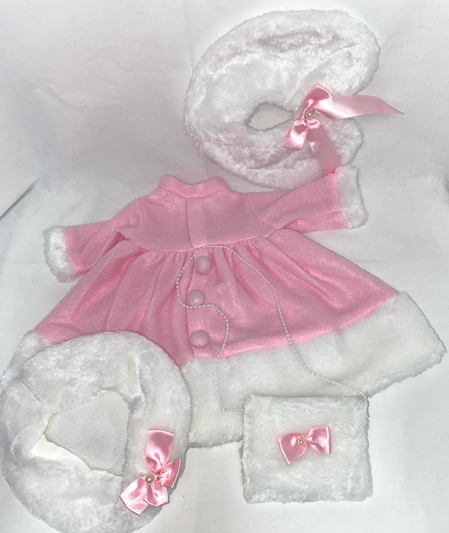 - Pink fleece dress with faux fur trim
